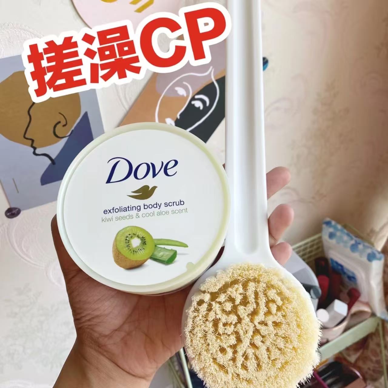 夏季适用于多芬磨砂膏双头沐浴刷洗澡搓背神器擦后背长柄软毛