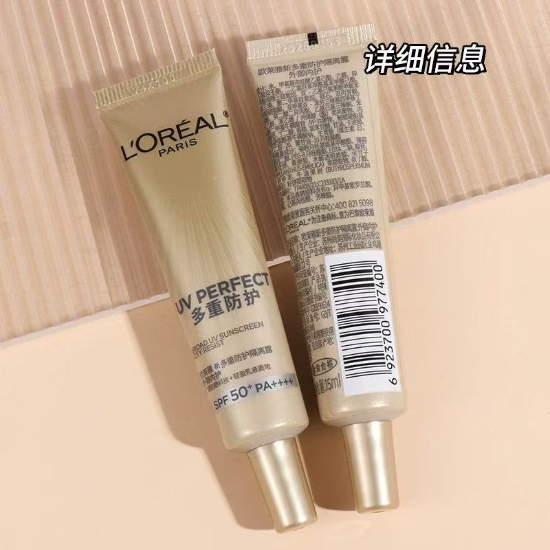巴黎欧莱雅小金管防晒霜15ml小样小银管隔离正品官方护肤品